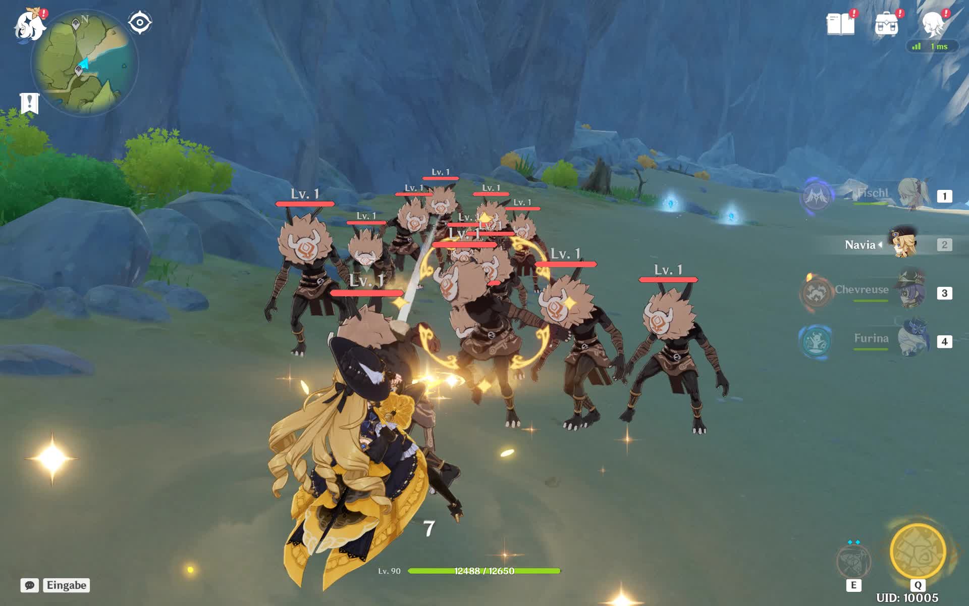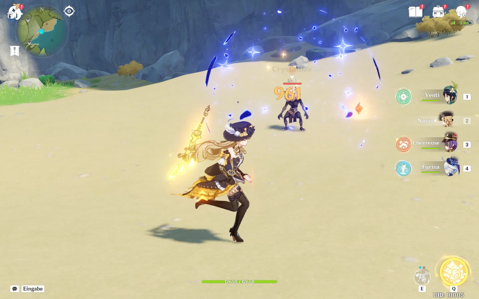 ナヴィアは結晶を拾うことで自身の元素スキルの火力を上げるため通常3キャンセル通常2コンボ(7hit結晶3)が結晶生成数的にも良さそうですね。